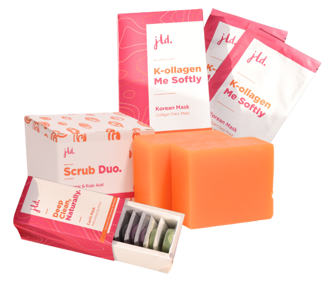 The ultimate skin revival kit. Start with Turmeric & Kojic Acid Soap to brighten and even your skin tone, detox with the Earth Mask , and keep the Korean Collagen Mask to lock in hydration and firmness with the at night.